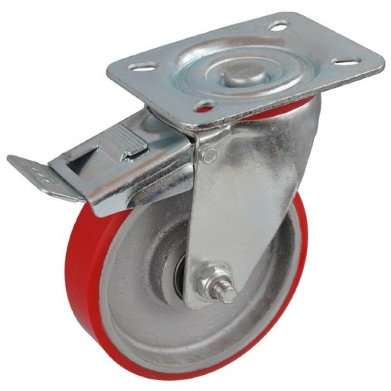 Колесо C 125 (102-080-125) с кронштейном поворотным чугун/полиуретан с тормозом