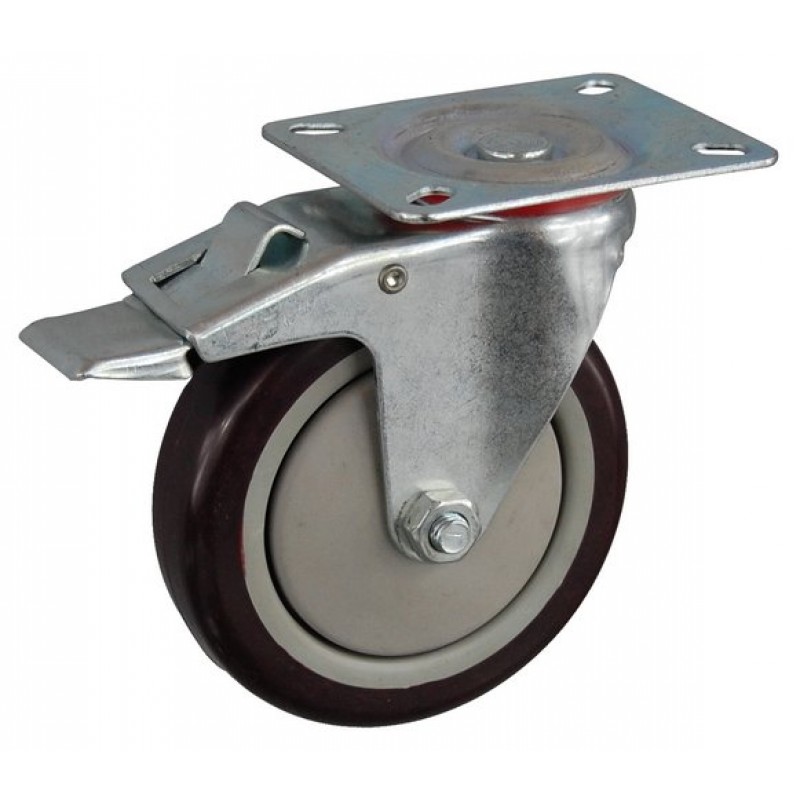 Колесо А 100 (002-060-100) с кронштейном поворотным пластик/полиуретан с тормозом