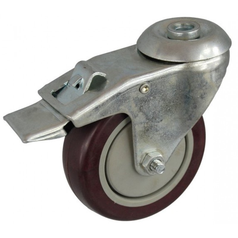 Колесо А 125 (007-061-125) с кронштейном поворотным пластик/полиуретан с отверстием 12,5 с тормозом