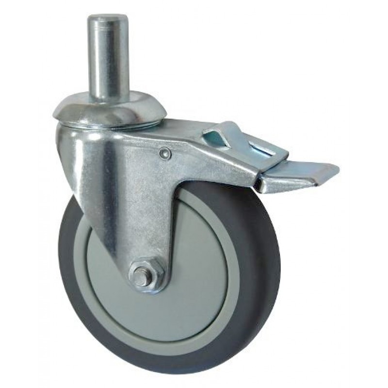 Колесо А 100 (011-063-100) с кронштейном поворотным пластик/TPR с осью fi.22 с тормозом