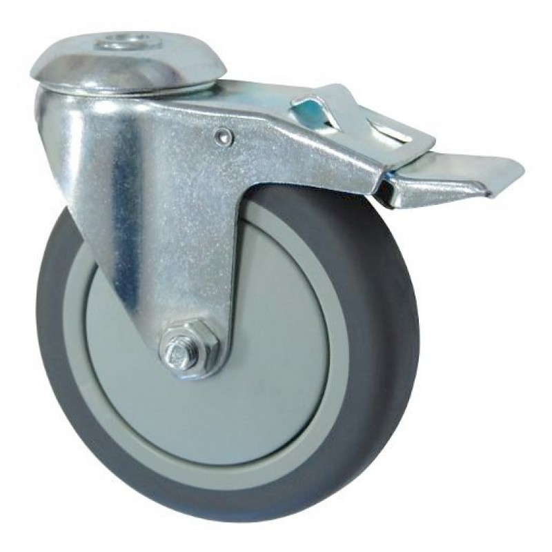 Колесо А 125 (007-063-125) с кронштейном поворотным пластик/TPR с отверстием 12,5 с тормозом