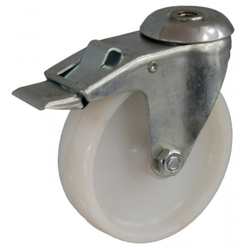 Колесо А 125 (007-022-125) с кронштейном поворотным полиамид с роликовым подшипником с отверстием 12,5 с тормозом