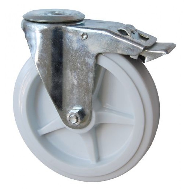 Колесо А 150 (007-040-150) с кронштейном поворотным полипропилен с отверстием 16,5 с тормозом