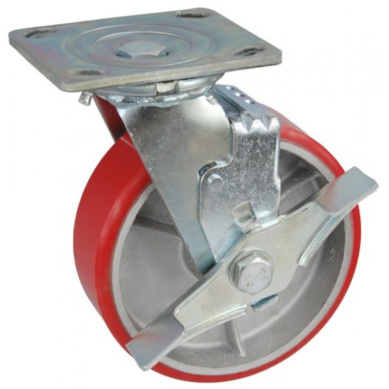 - Колесо SA 200 (302-225-200) с кронштейном поворотным чугун/полиуретан с тормозом