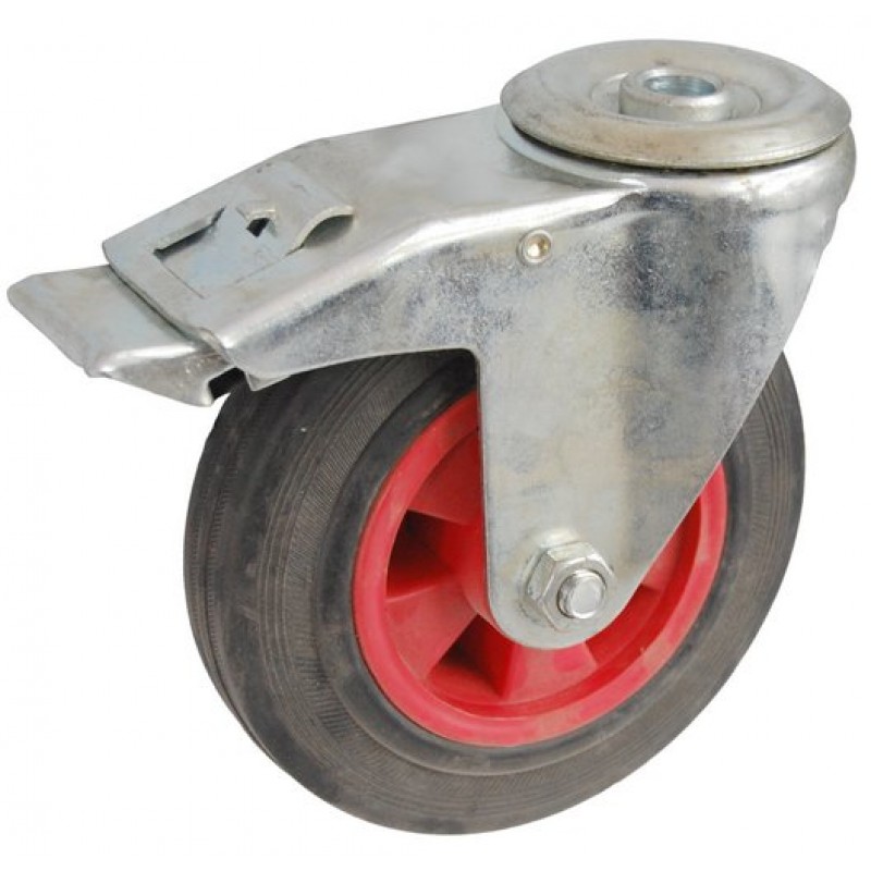 Колесо А 125 (007-003-125) с кронштейном поворотным пластик/резина с отверстием 12,5 с тормозом