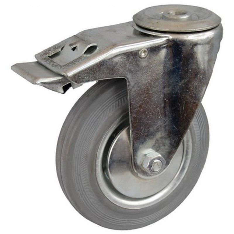 Колесо А 160 (007-002-160) с кронштейном поворотным металл/резина серая с отверстием 16,5 с тормозом