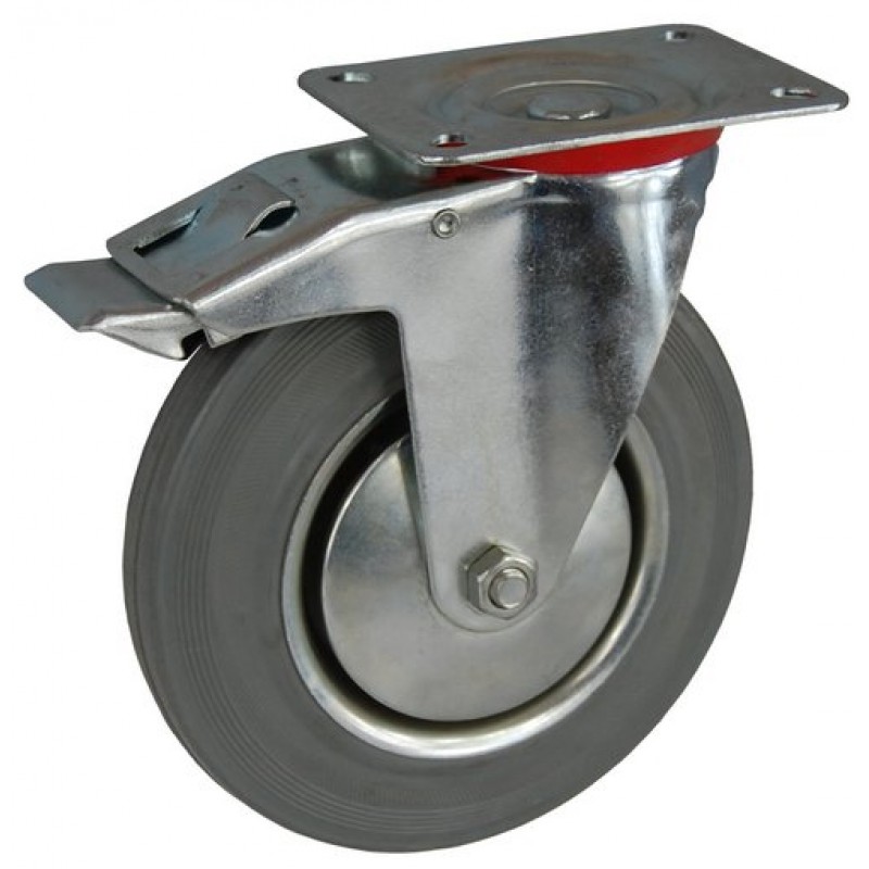 Колесо А 75 (002-002-075) с кронштейном поворотным металл/резина серая с тормозом
