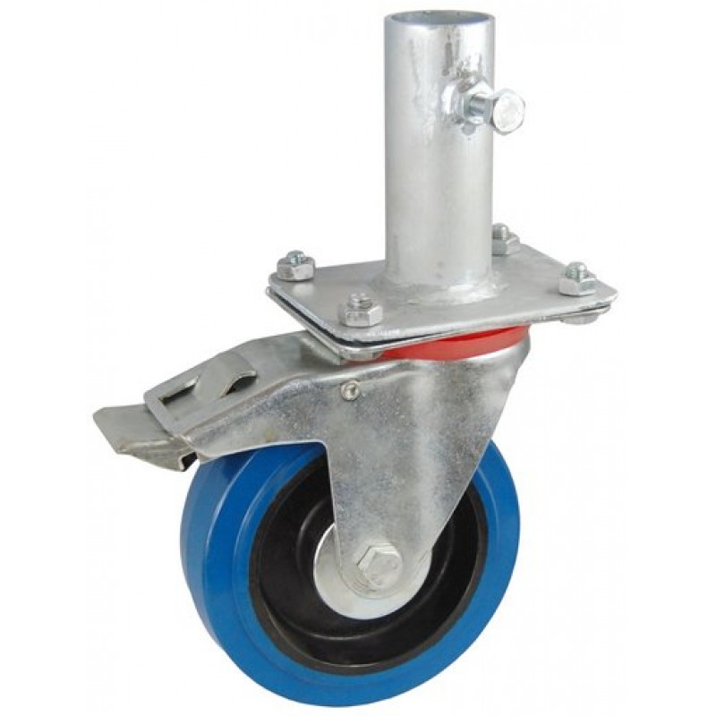 Колесо RA 160 (002-065-160R2) с кронштейном поворотным эластик с креплением под круглый профиль с фиксирующими болтами с тормозом